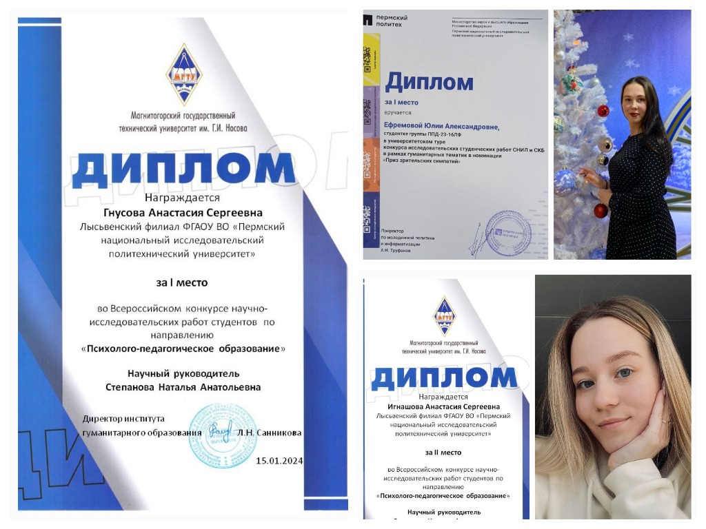 - 1 место в номинации «Психолого-педагогическое образование» заняла Анастасия Гнусова с работой «Игровая деятельность как средство формирование элементарных экономических знаний у старших дошкольников».